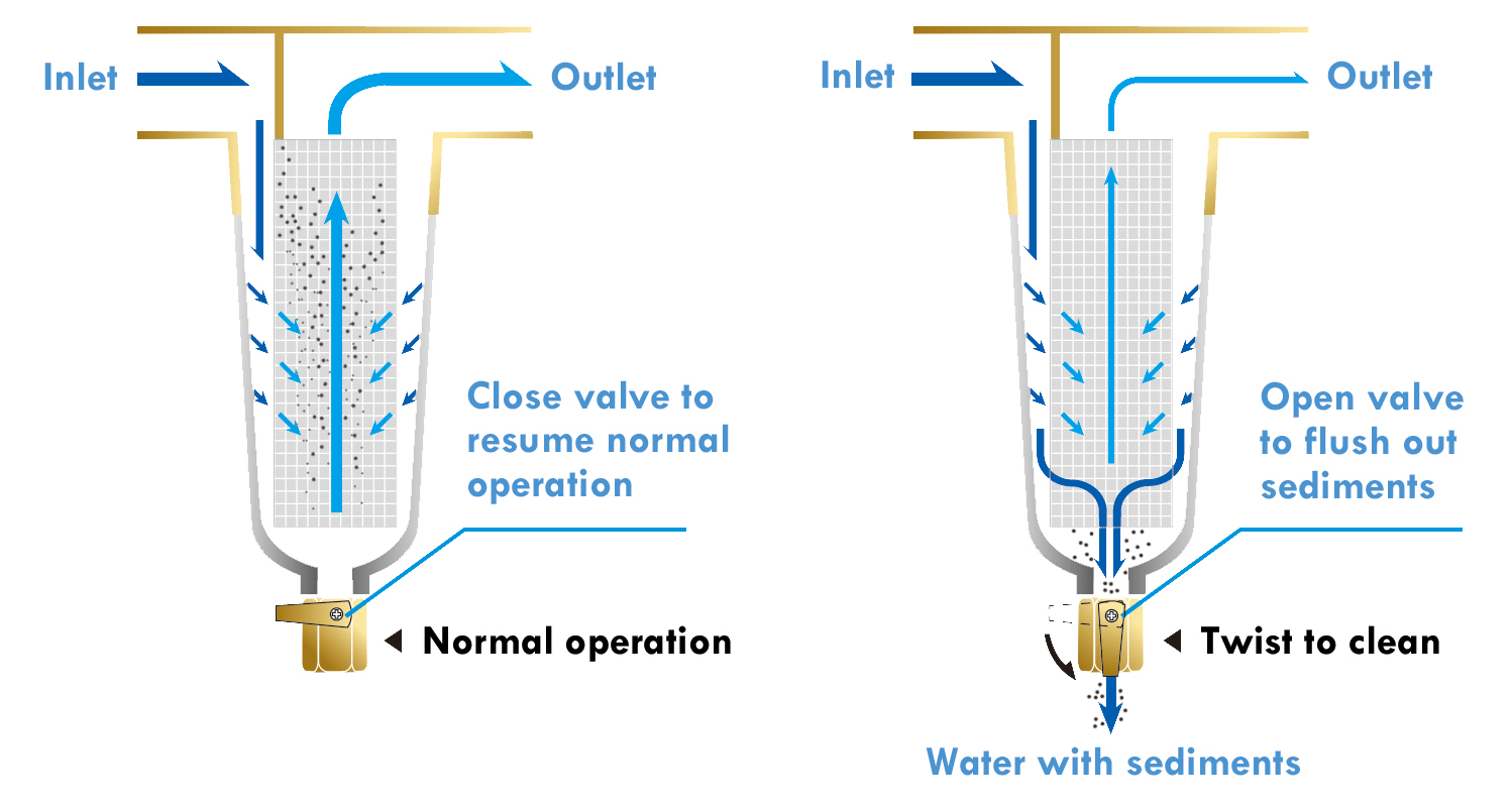 ![]() Step 3: Sediments collected in the water are not toxic. You may recycle the water. | ![]() Step 4: The filter is cleared. There is no need to purchase a new filter or to engage a specialist to replace any parts. |